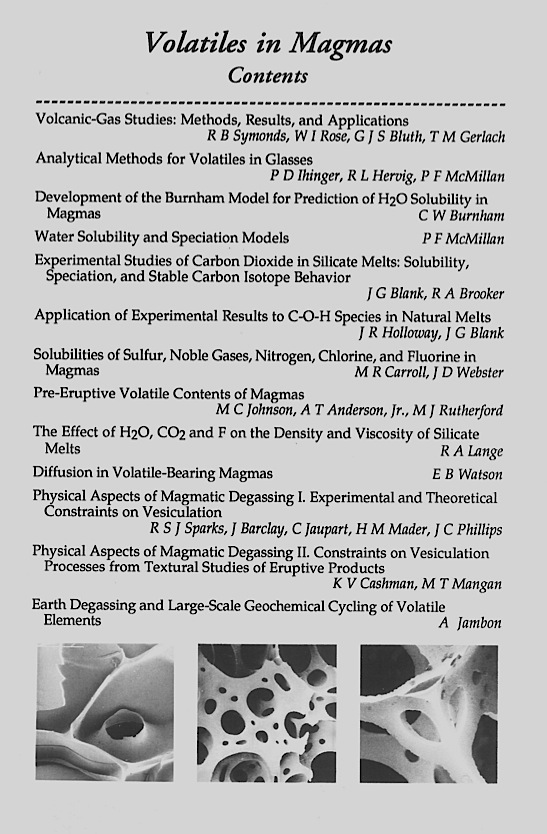 What we hope to show in this volume are some areas of progress in understanding the behavior of magmatic volatiles and their influence on a wide variety of geological phenomena; in doing this it also becomes apparent that there remain many questions outstanding. The range of topics we have tried to cover is broad, going from atomisticscale aspects of volatile solubility mechanisms and attendant effects on melt physical properties, to the chemistry of volcanic gases and the concentrations of volatiles in magmas, to the global geochemical cycles of volatiles. The reader should quickly see that much progress has been made since Bowen voiced his concerns about Maxwell demons, but like much scientific progress, answers to old questions have prompted even greater numbers of new questions.